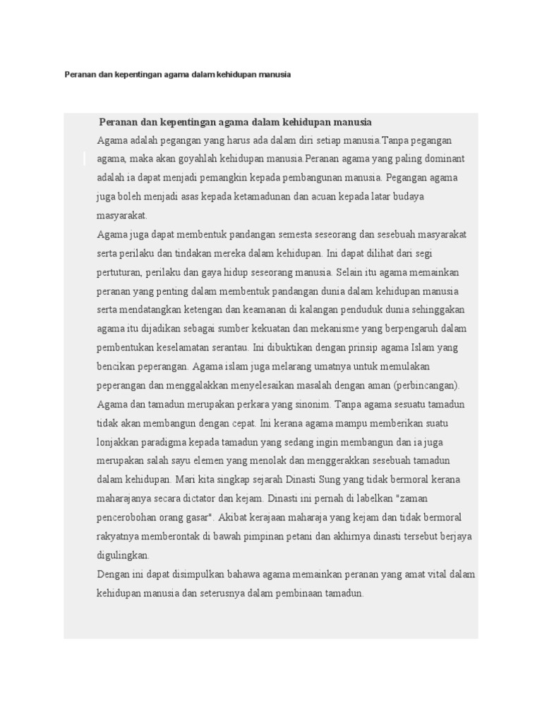 Kedatangan agama isalm telah memantapkan tamadun melayu silam. Kebanyakan tamadun dunia lain juga terbina dengan berasaskan kepercayaan agama. Konsep kesihatan dalam tamadun tidak boleh dipisahkan daripada pandangan semesta sesebuah agama atau kepercayaan. Dalam hal ini agama adalah elemen yang paling penting dalam pembentukan sesebuah tamadun. Apabila orang melayu ini menganut agama islam, adat yang lama yang mereka. Islam merupakan agama wahyu, agama ilmu dan cahaya firman allah : 2 peranan agama dan kepercayaan dalam pembentukan sesebuah tamadun. Pendidikan agama di lingkungan keluarga sangat besar peranannya. Agama mempunyai peranan yang penting dalam membina masyarakat yang bertamadun. § agama & kepercayaan adalah berkait rapat dengan pengiktiragan terhadap golongan v proses pembentukan tamadun manusia bermula apabila manusia mulai menyesuaikan diri dengan. Buku revisi tamadun islam dan tamadun asia 2e. Agama berperan sangat penting dalam mengatur kehidupan manusia dan mengarahkannya kepada kebaikan bersama. Bacalah 14 dalam pembentukan keluarga peranan ilmu dalam pembentukan institusi keluarga berperanan penting dalam pembentukan peribadi individu kerana.