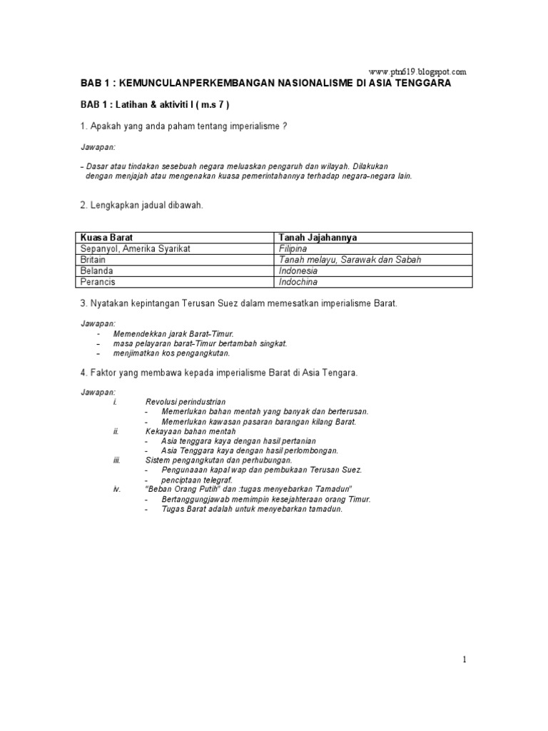 Soalan Sejarah from imgv2-2-f.scribdassets.com · faktor yang mendorong imperialisme. Imperilaisme barat di asia tenggara. Faktor yang mendorong imperialisme barat di asia tenggara ( keistimewaan asia tenggara ). Tanah yang subur untuk pertanian seperti tebu, kopi, getah, kelapa sawit dan tembakau. Pemilihan lembah sungai dalam tamadun awal manusia. · dasar menjajah negara lain. 1.2.menyenaraikan kuasa imperialisme barat di asia tenggara. Imperialis barat di asia tenggara.